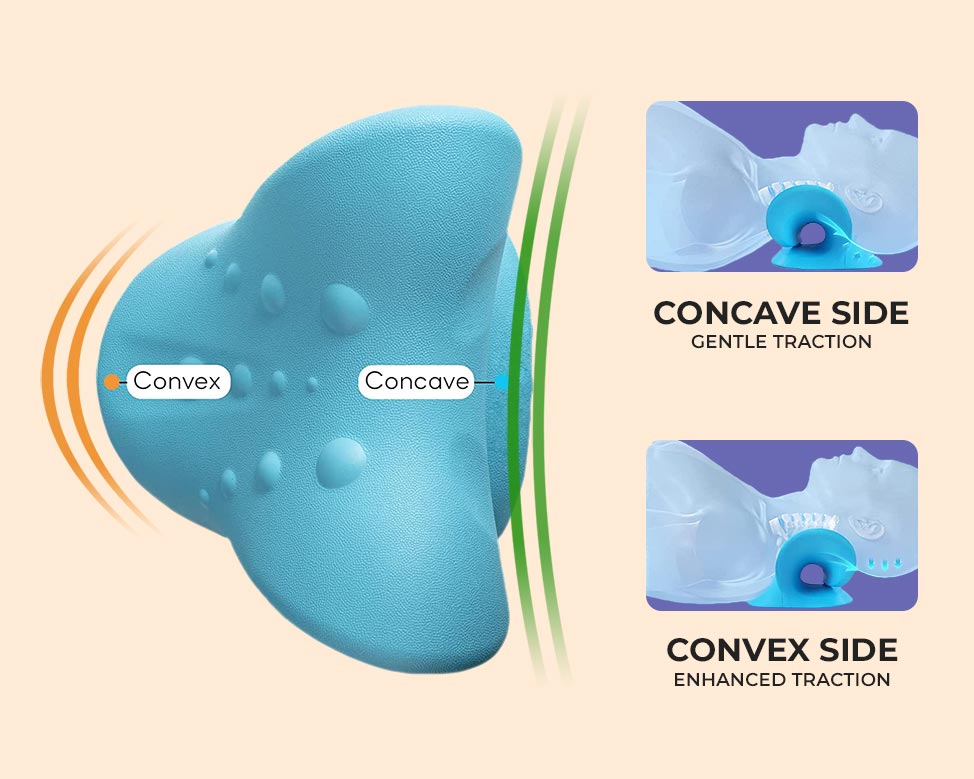 The CerviFlex™ neck traction device comes equipped with a convex side for a gentler stretch to prepare users for the concave side which will give users a deep stretch and adjustment. Ease your way into optimal neck posture and pain relief, with just 15 minutes a day.