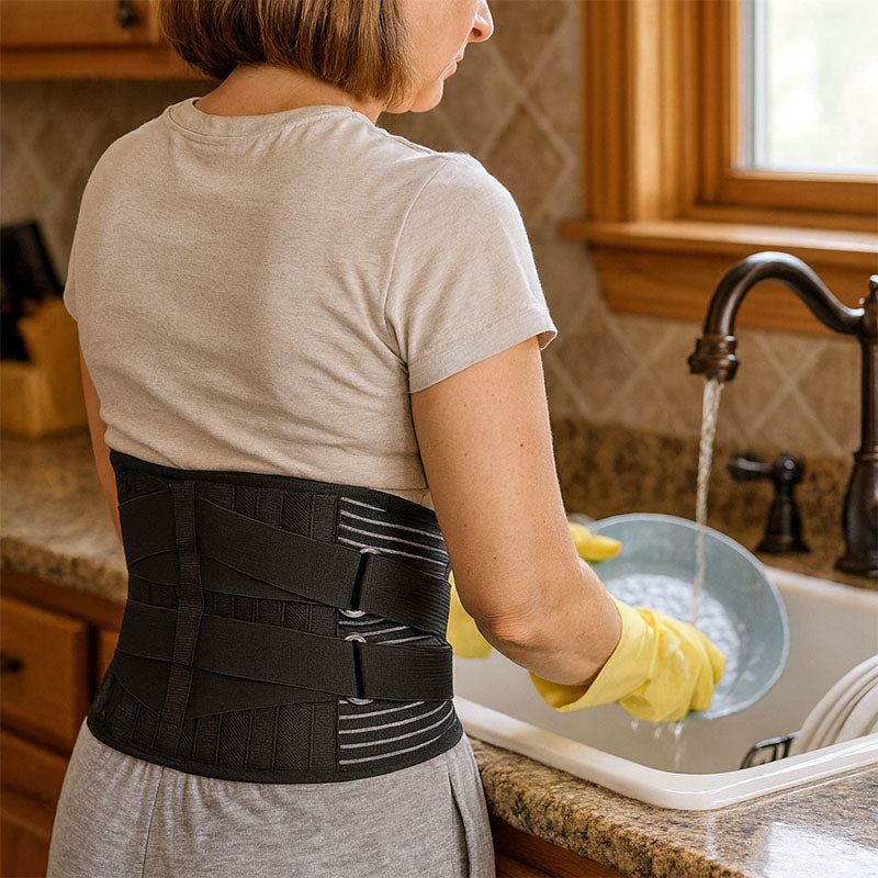 Basic back support belts or braces are either too stiff and bulky restricting movement or fit loose without providing the proper support to be effective. With this lumbar brace, you get the best of both worlds: a truly supported lower back, while being able to move through a variety of different activities.
