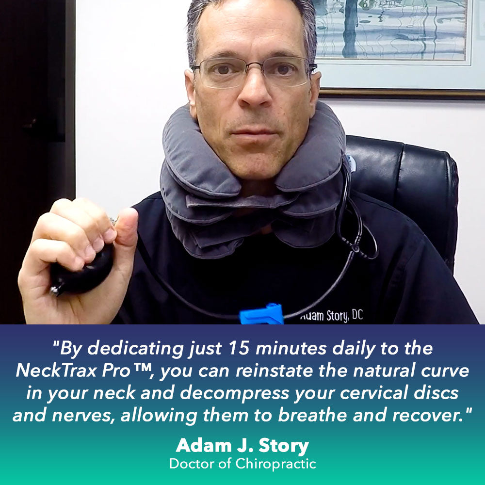 Chiropractors endorse the NeckTrax Pro™ inflatable cervical traction device as an essential solution for addressing chronic neck pain, TMJ, tension headaches, pinched nerves, and poor posture.